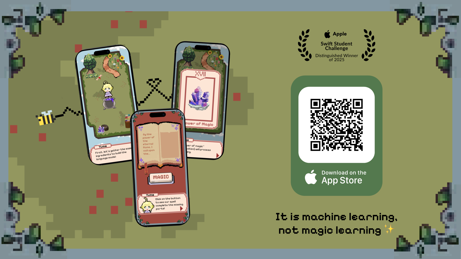 Yume’s Spellbook is an educational iOS app that gamifies the training and fine-tuning of large language models (LLMs) through interactive storytelling. Players help Yume, a friendly wizard, craft magical spells using ingredients like computation, raw text, and hyperparameters—making complex AI concepts intuitive and engaging. The app features an on-device Core ML–optimized GPT-2 model, compressed using pruning and quantization techniques. This project earned Larissa a Distinguished Winner award at the Apple Swift Student Challenge 2025 and an invitation to attend WWDC in Cupertino.